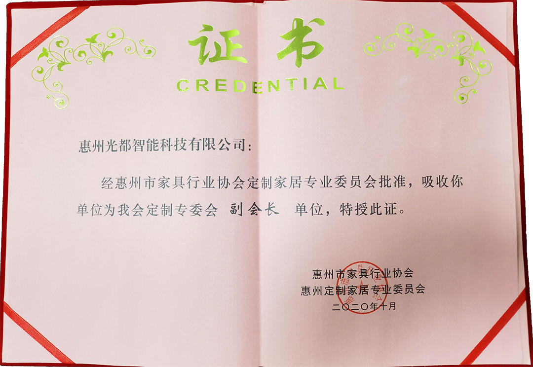 恭賀光都榮任惠州家具協會定制委員會副會長