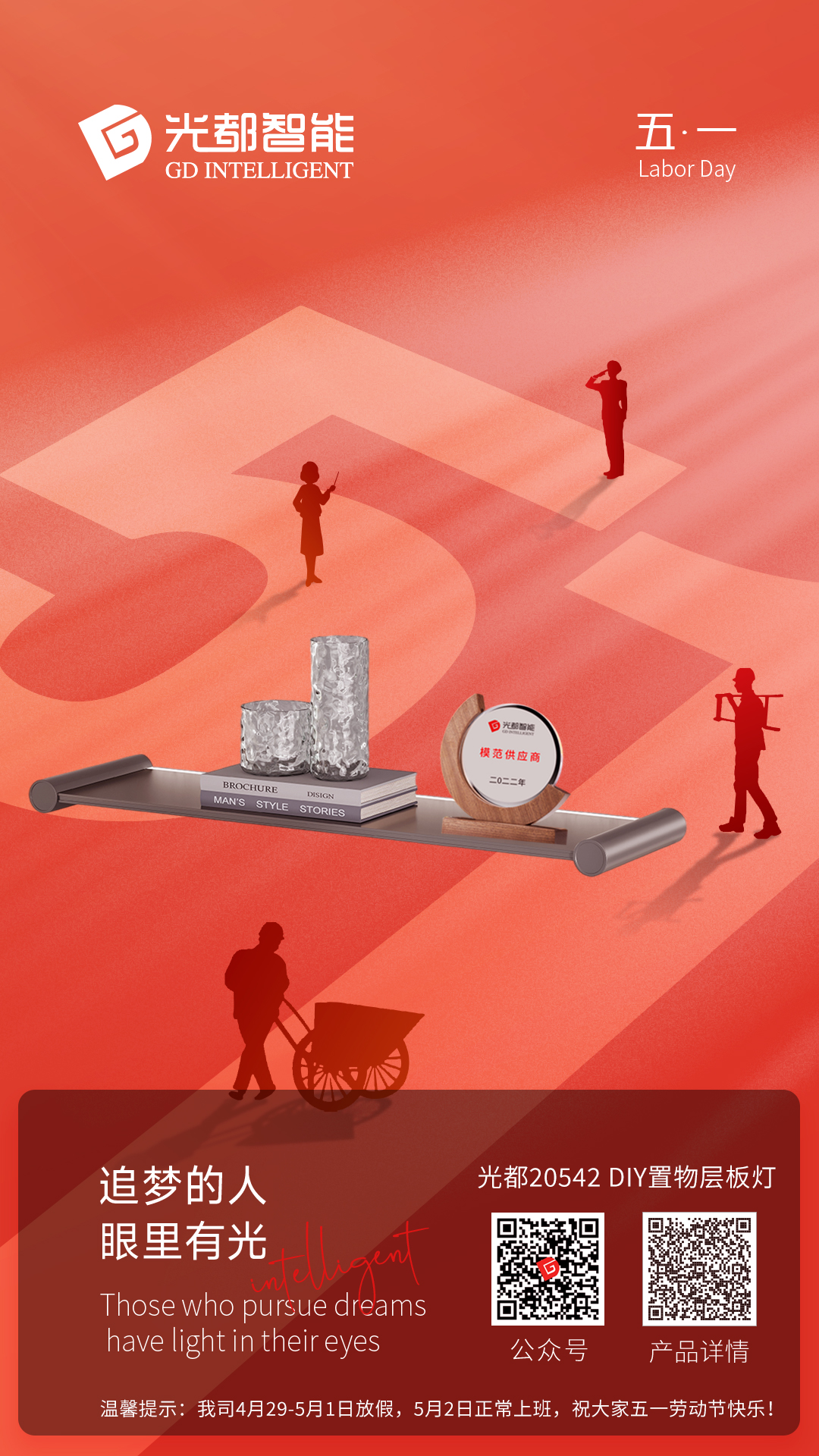 溫馨提示:我司4月29-5月1日休假,5月2日正常上班,祝大家五一勞動(dòng)節(jié)快樂(lè)!光都新品20542 DIY置物層板燈致敬勞動(dòng),五月優(yōu)費(fèi)上樣!